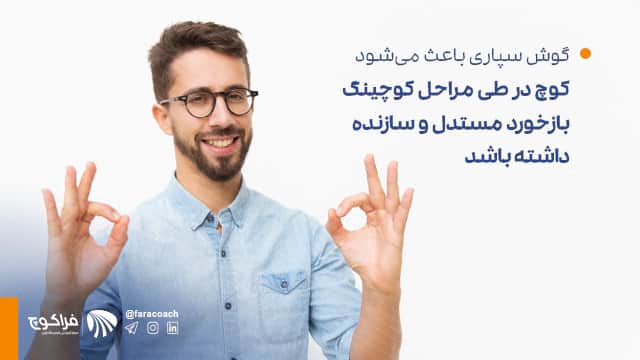 هنر گوش سپاری باعث میشود کوچ در طی مراحل کوچینگ بازخورد مستدل و سازنده داشته باشد. این رفتار دارای مزایای دیگری نیز است. مراجع شما باید احساس کند که به دیدگاهها و تفسیرهایش از دید یک رویداد بسیار ارزشمند توجه شده است. مراجع باید ترغیب شود تا ایدهها و تفکرات خود را برای رسیدن به هدفشان جستجو کنند. برای اینکه یک کوچ کارآمد باشد باید نشان دهد که واقعاً به شخص مقابل و صحبتهای او علاقه مند است. او تمام تلاشش را میکند تا به مراجع در پیشرفت شایستگیها و بهبود عملکرد کمک کند.